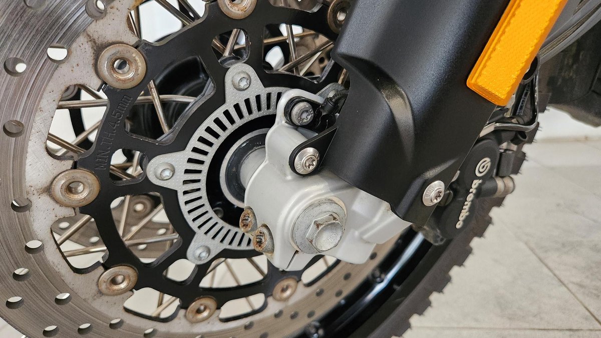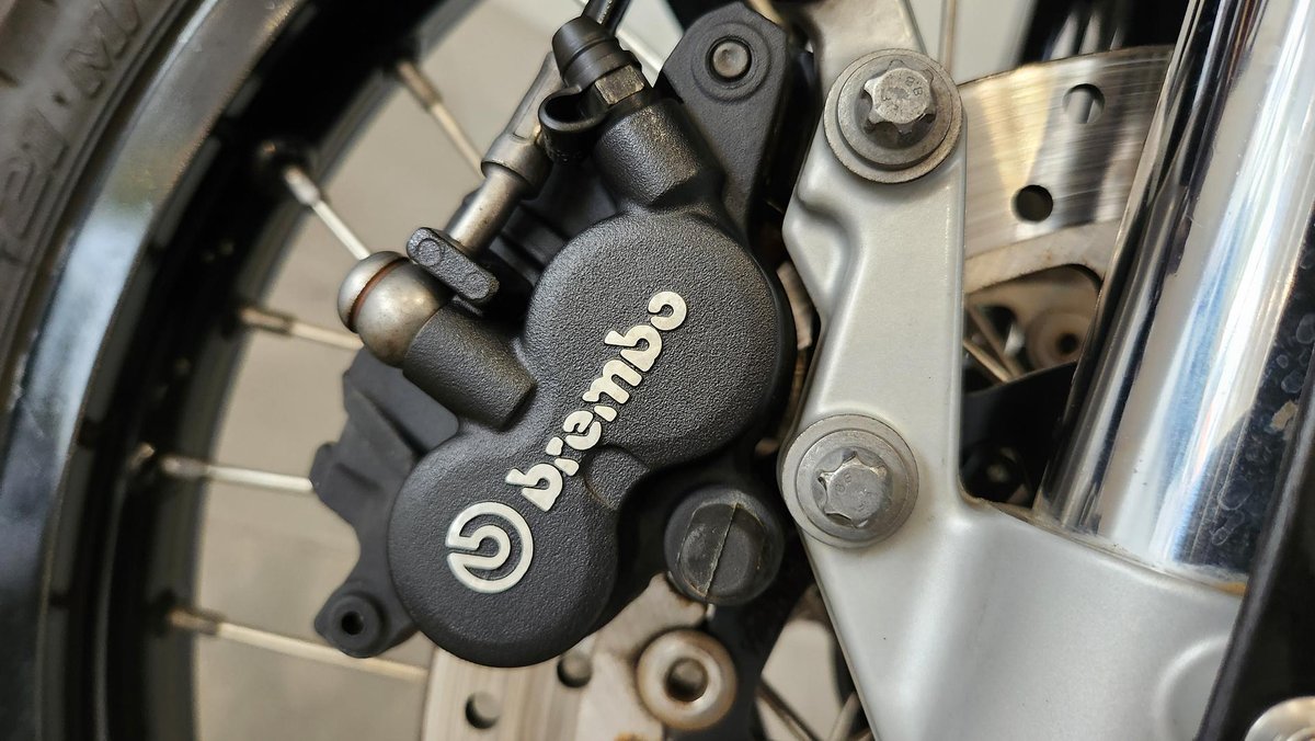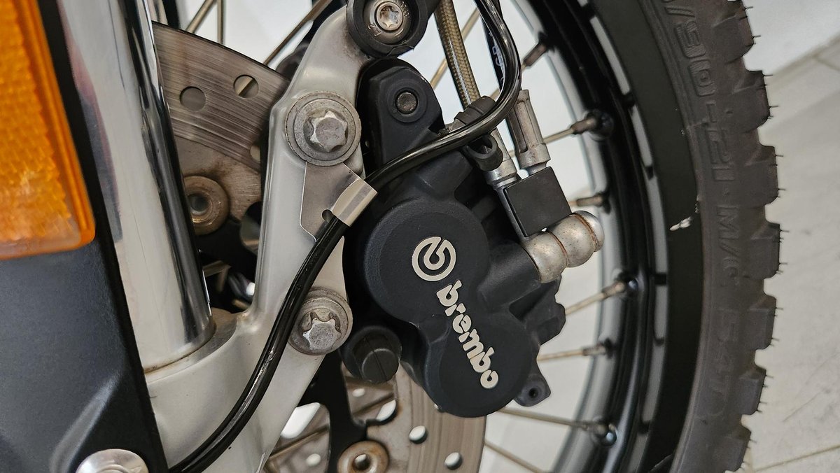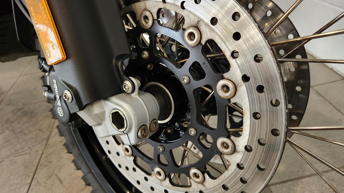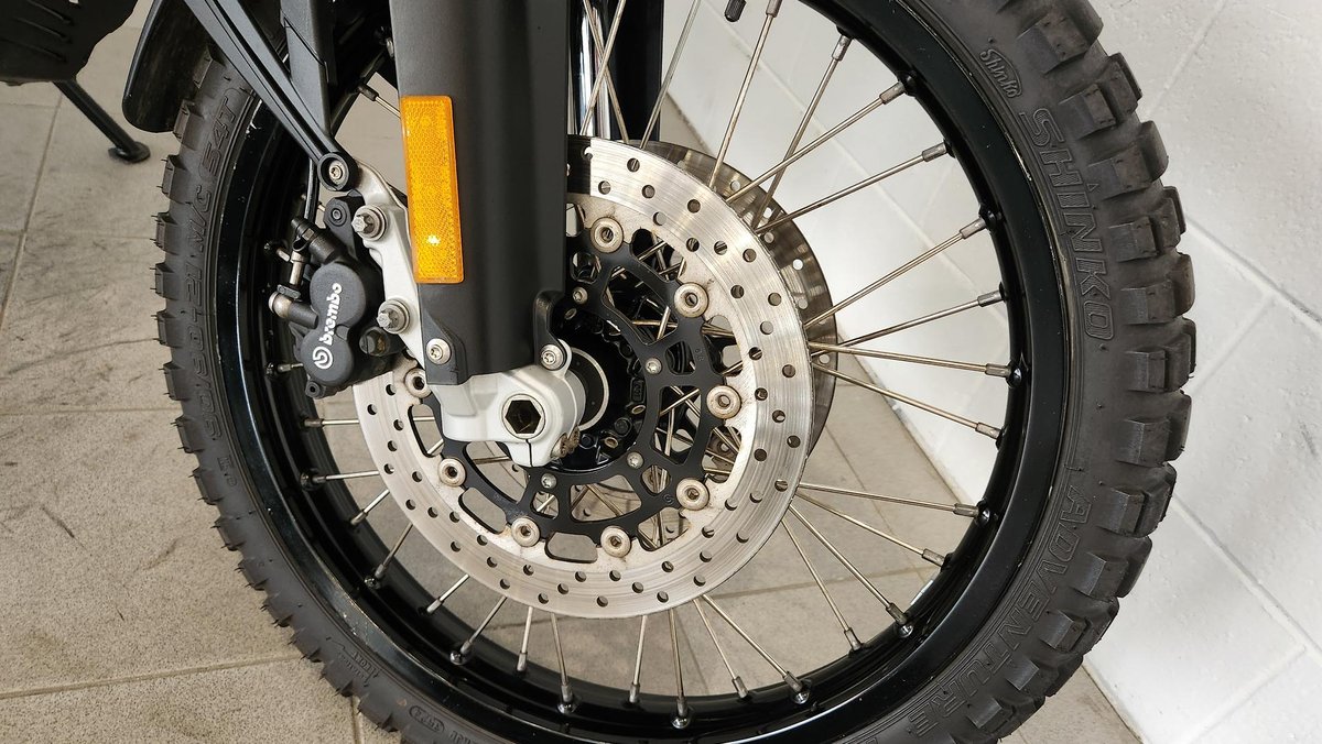 - Front Brake Description: Twin floating discs; Floating calipers; ABS