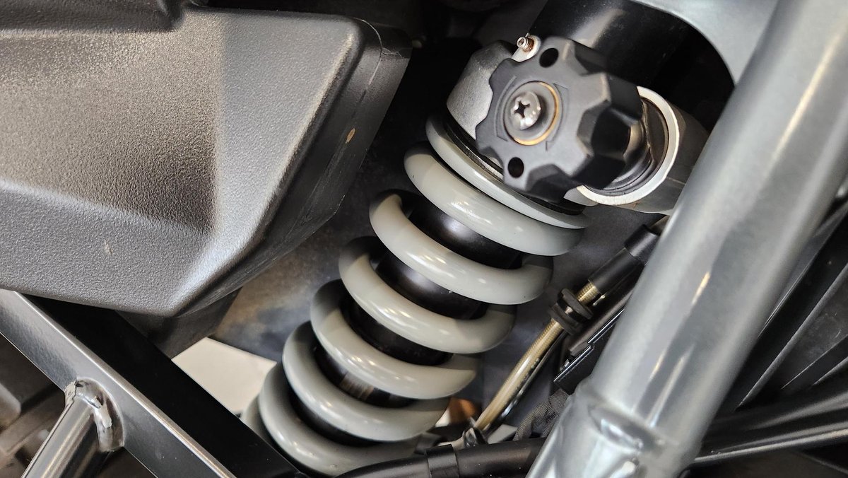 - Rear Suspension: Swingarm, WAD strut (travel related damping), spring pre-load hydraulically adjustable (continuously variable) at handwheel, rebound damping adjustable