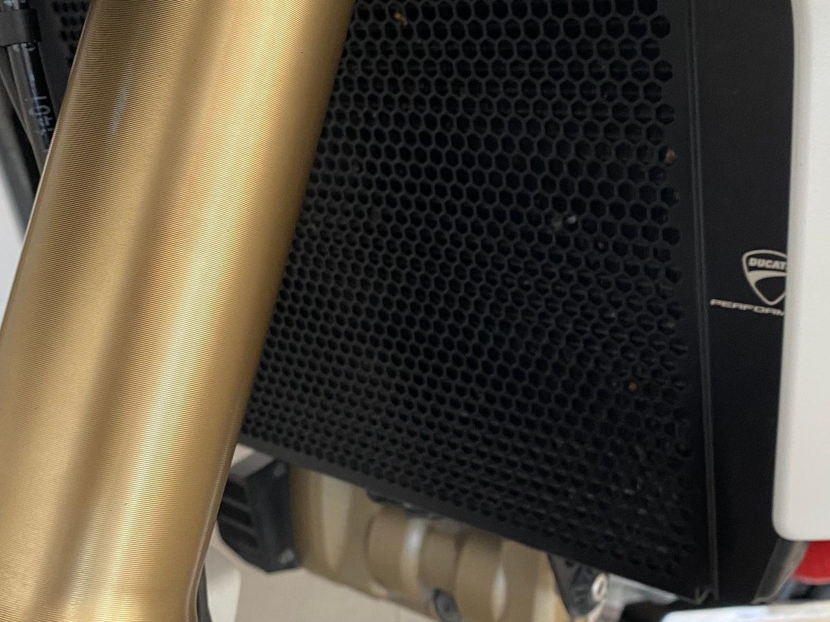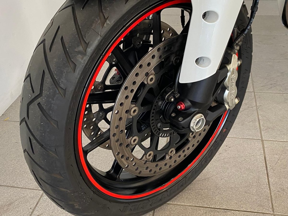 - Front Brake Description: Twin semi-floating discs, Radially mounted Brembo calipers, Hydraulic; ABS
