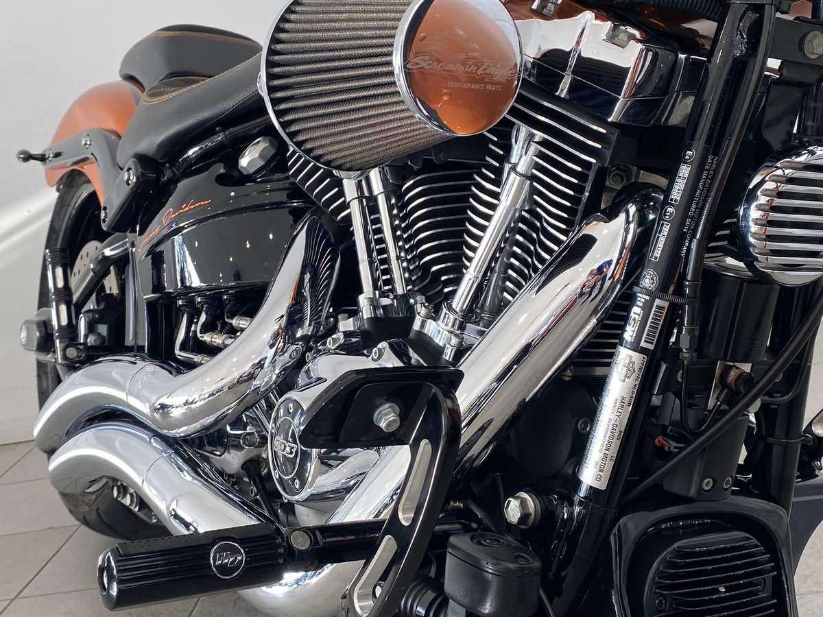 Signature Breakout Styling: Raked front end, chunky rear tyre, and slammed profile for a true custom look straight from the factory.