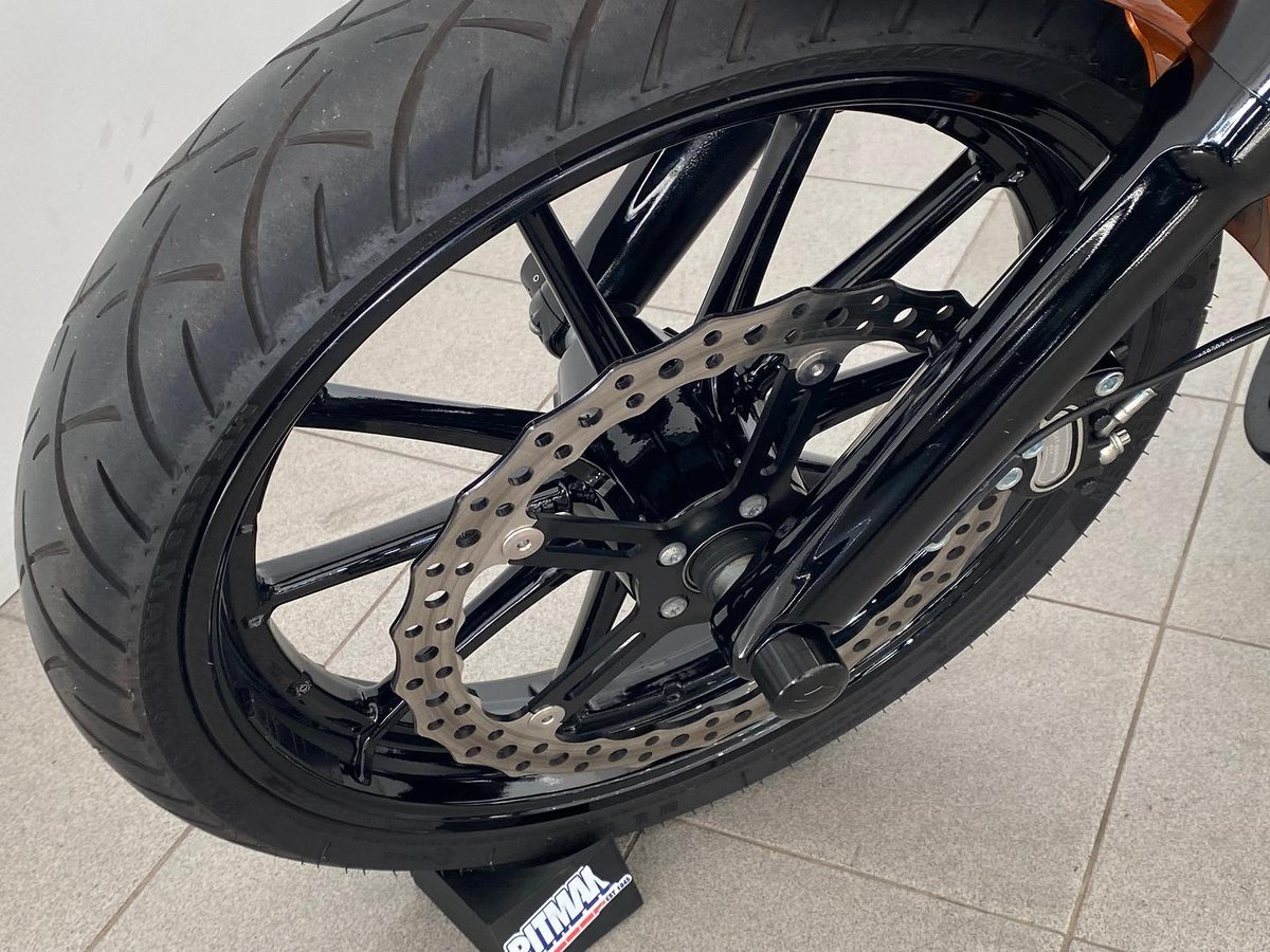 - Front Brake Description: Single floating disc; Fixed caliper; Hydraulic; ABS
