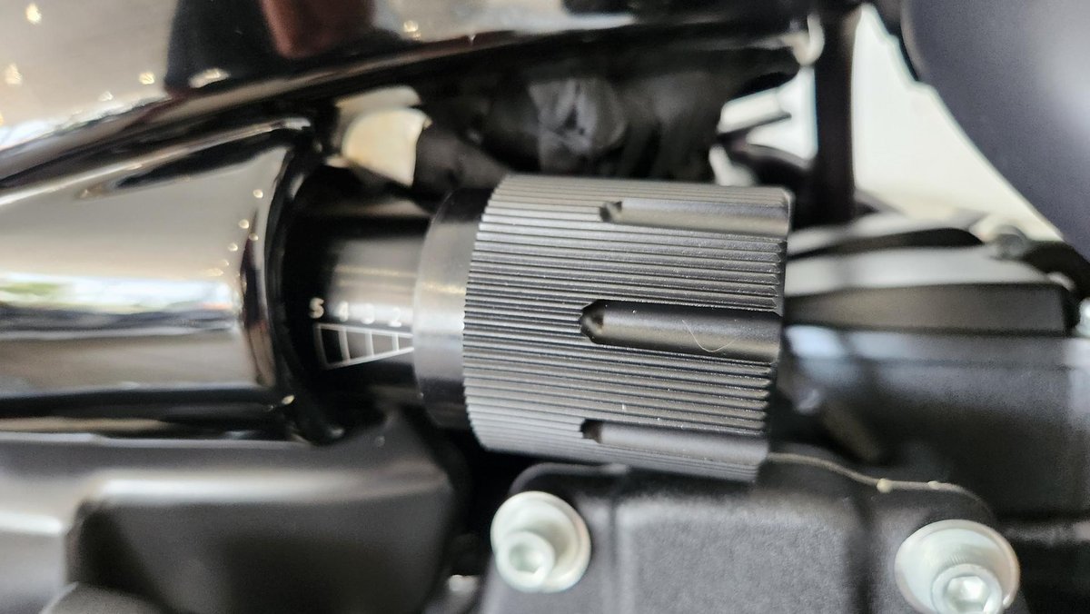 - Rear Suspension: Hidden piston free coil-over monoshock; Hydraulic preload adjustment (External hand adjustment knob)