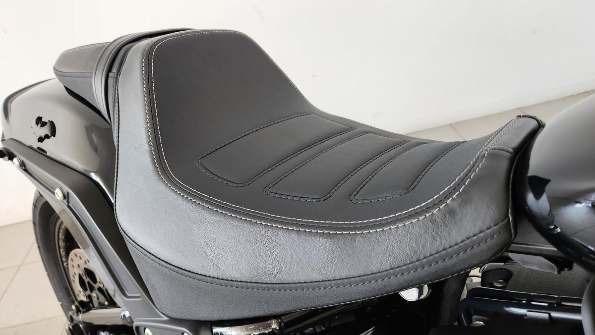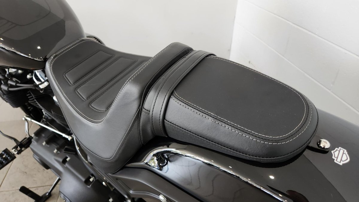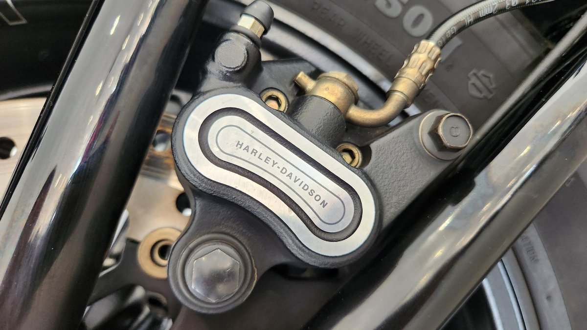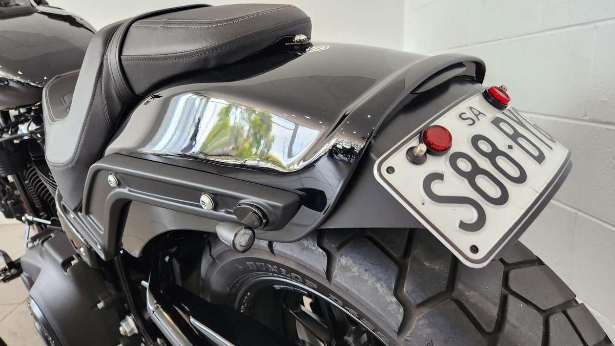 Chassis & Suspension: Built on the modern Softail frame, it features a unique inverted race-style front fork (43mm single cartridge) and an easily toolless-adjustable rear monoshock for surprisingly responsive handling and a comfortable ride.