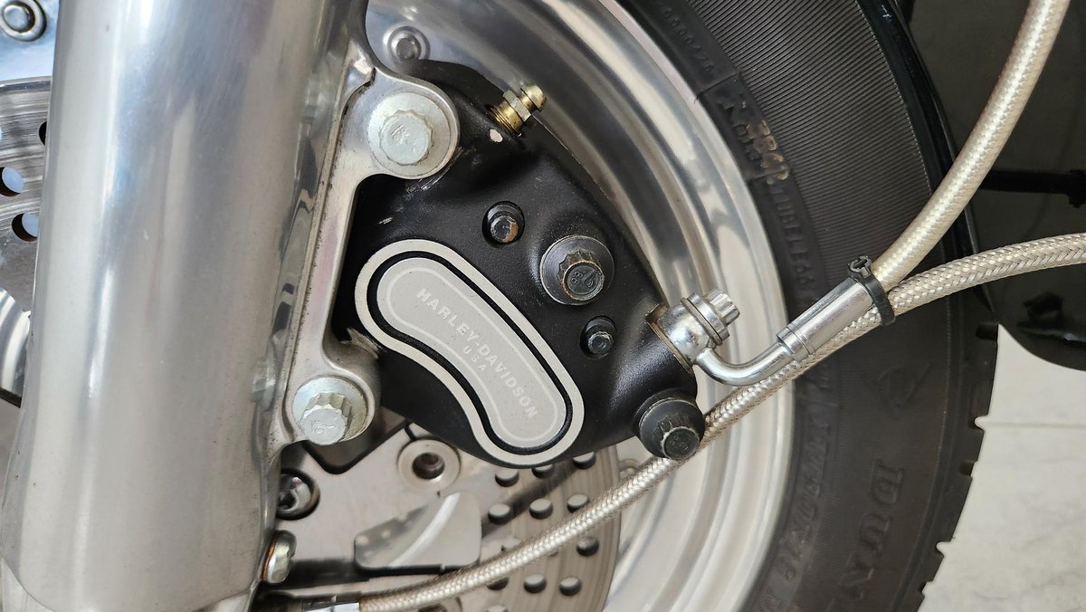 Performance and stance have been radically upgraded with a custom swingarm conversion to accommodate a massive 200-series rear tire, giving the bike a modern, muscular footprint that dramatically changes its handling and appearance. These heavy modifications are complemented by a host of other custom features, turning a classic Harley cruiser into a true one-of-a-kind showstopper.