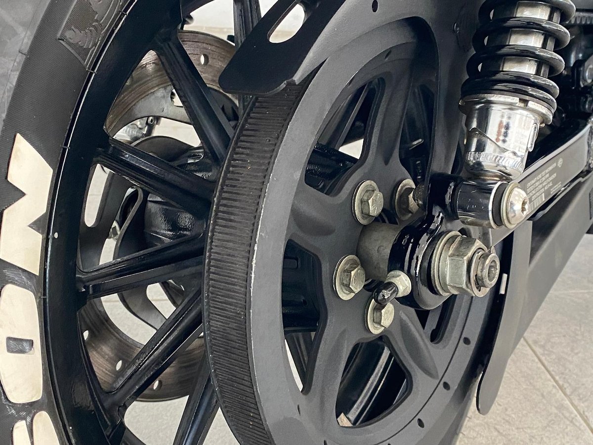 Blacked-Out Styling: Dark finishes, chopped fenders, and classic Iron stance.