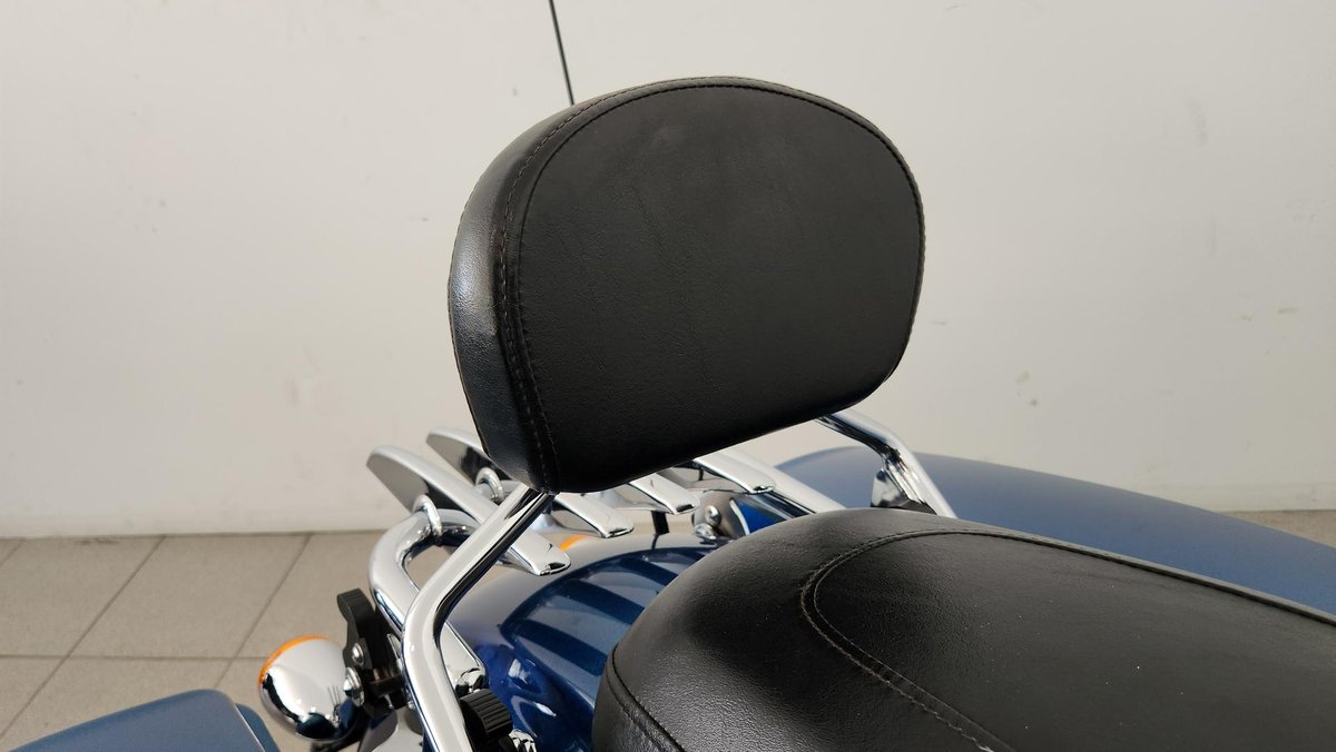 Detachable backrest and luggage rack for rider comfort and practical touring versatility.