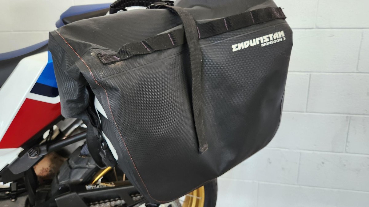 Enduristan soft panniers – rugged, waterproof, and perfect for touring.