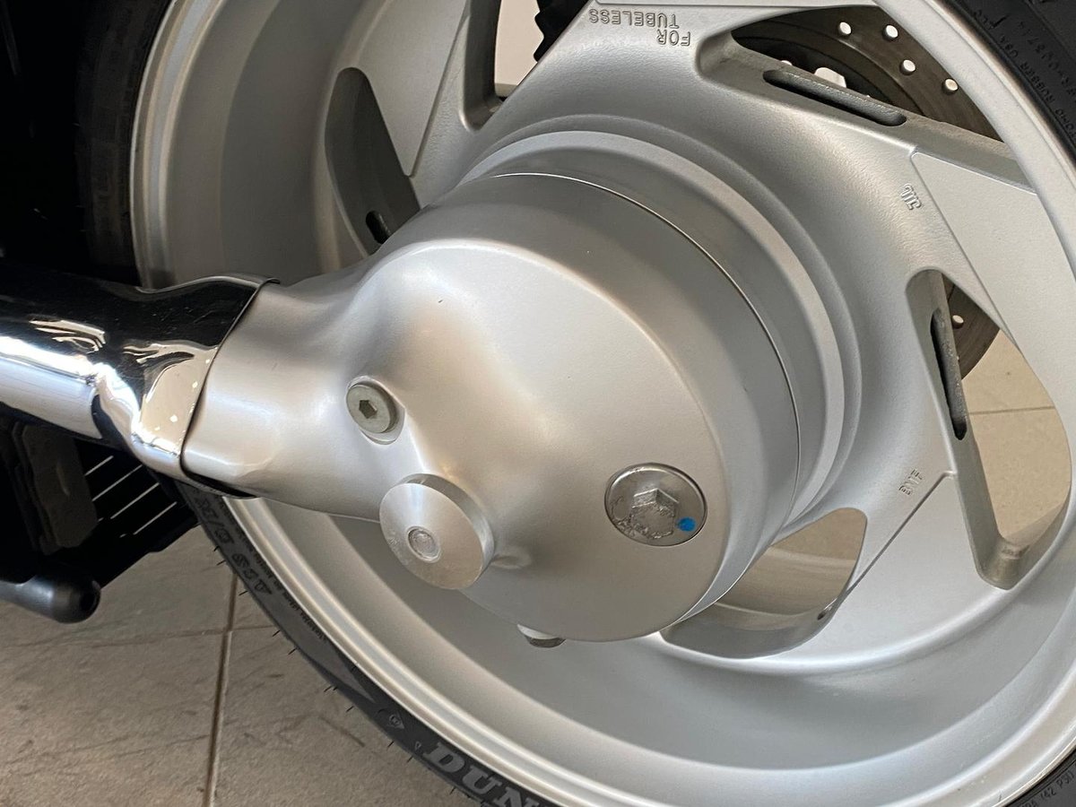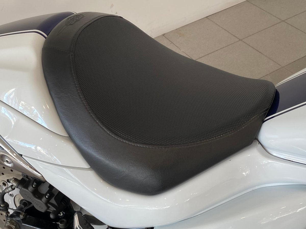 Flowing, imposing bodywork from its distinctive headlight nacelle to the drag-style handlebars.