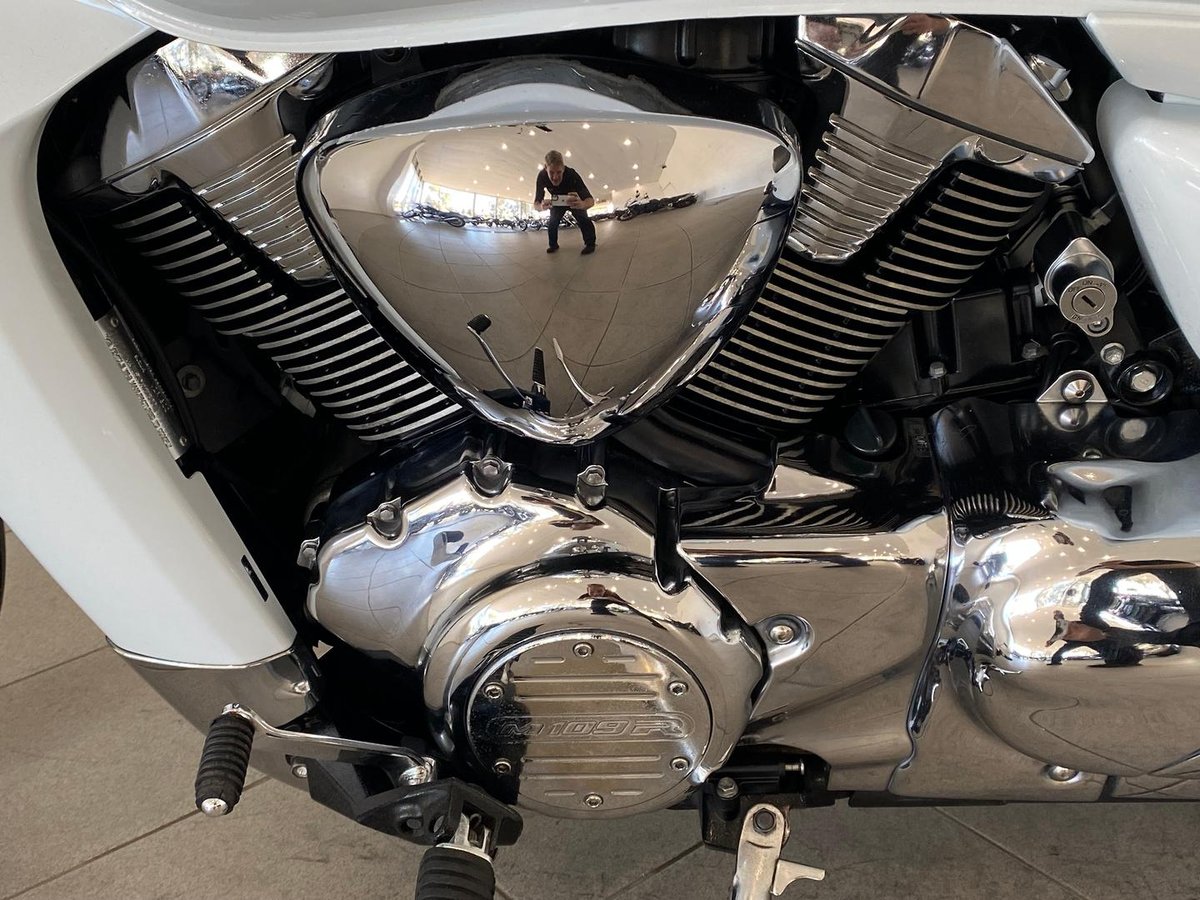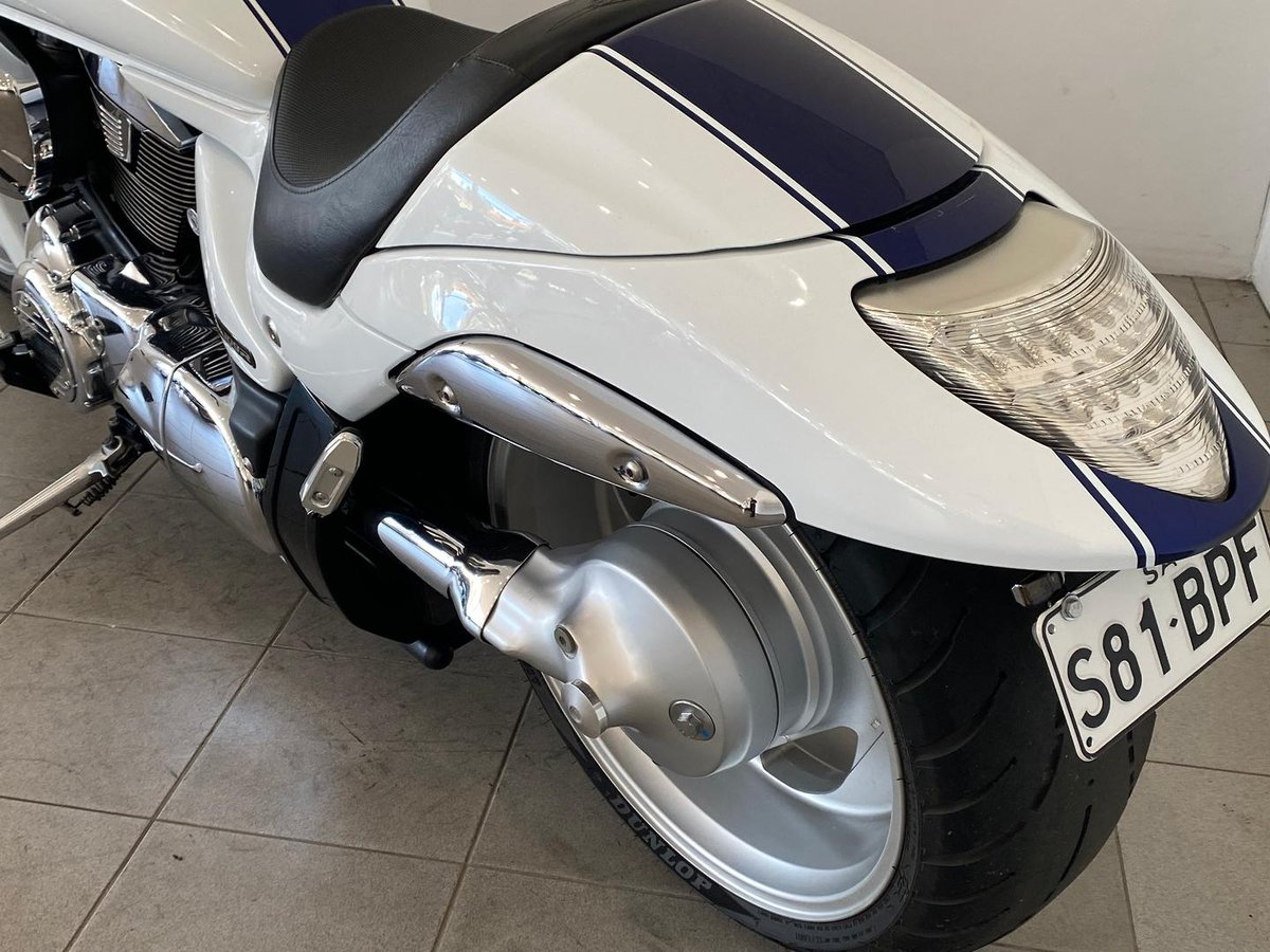 This bike is in excellent condition with only 23628km on the clock, Fitted with custom made pipes, tail tidy and slim line indicators, Forget subtle; the 2009 Suzuki M109R is a full-throttle declaration of muscle and menace. This isn't just a cruiser—it's a Power Cruiser built to bully the asphalt.
