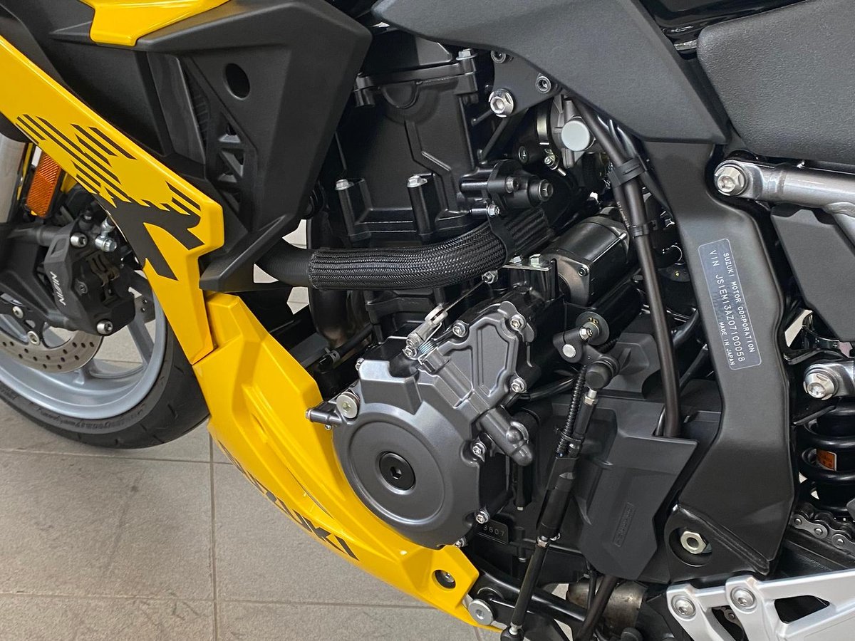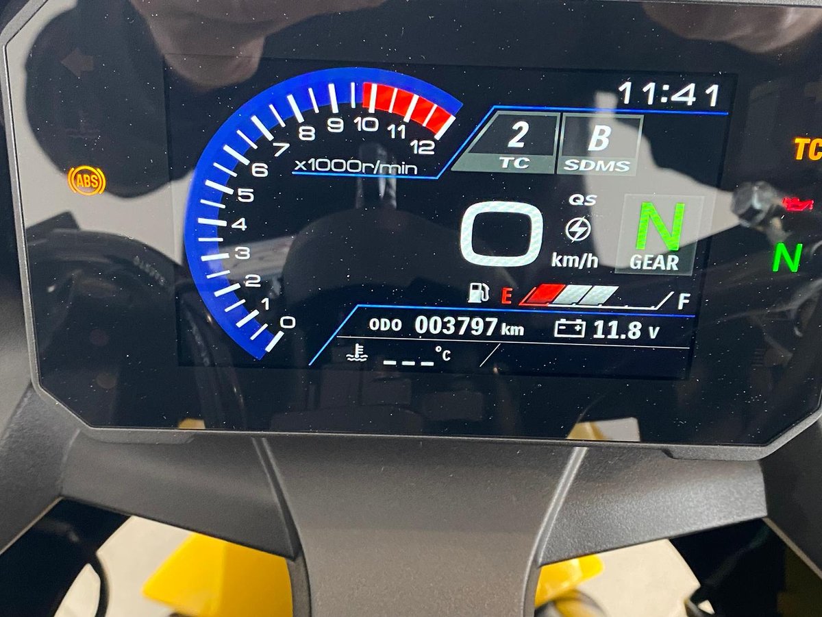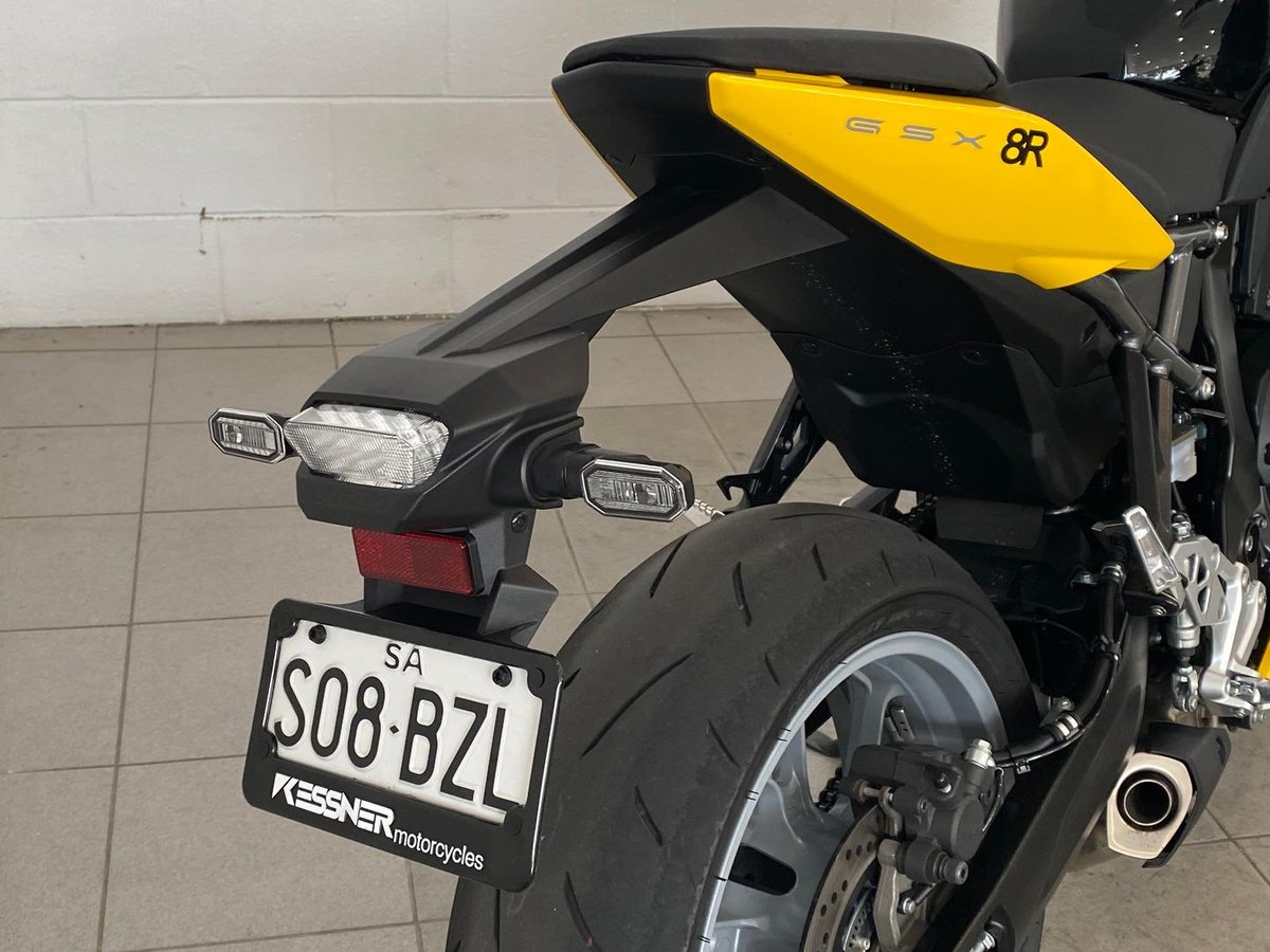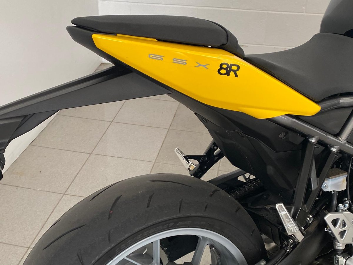 The GSX-8R is fitted with a steel frame and fully adjustable Showa suspension, giving it sharp handling and stability, while radial-mount four-piston Brembo brakes provide serious stopping power. Rider aids include Suzuki Drive Mode Selector (SDMS), traction control, ABS, and a 5-inch TFT display with smartphone connectivity.
