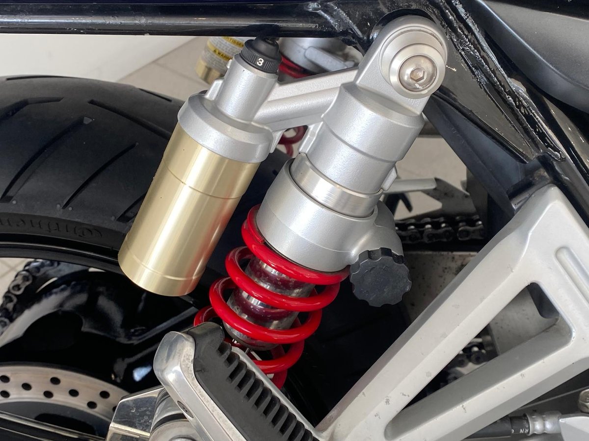 - Rear Suspension: Swingarm; Twin piggy-back shock absorbers; Oil damped, coil spring; Spring pre-load adjustable; Rebound & compression damping 4-way adjustable