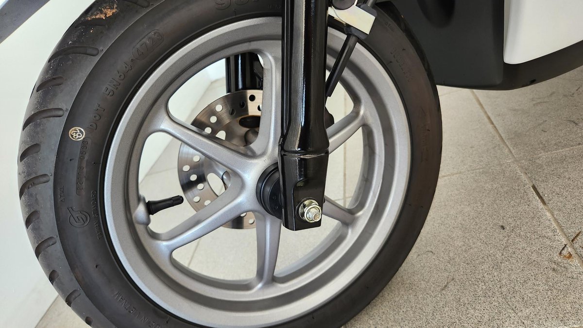 Braking: It uses a single hydraulic disc brake at the front and a drum brake at the rear, featuring a Unified Braking System (UBS) which links the brakes for balanced stopping performance. It does not include ABS.
