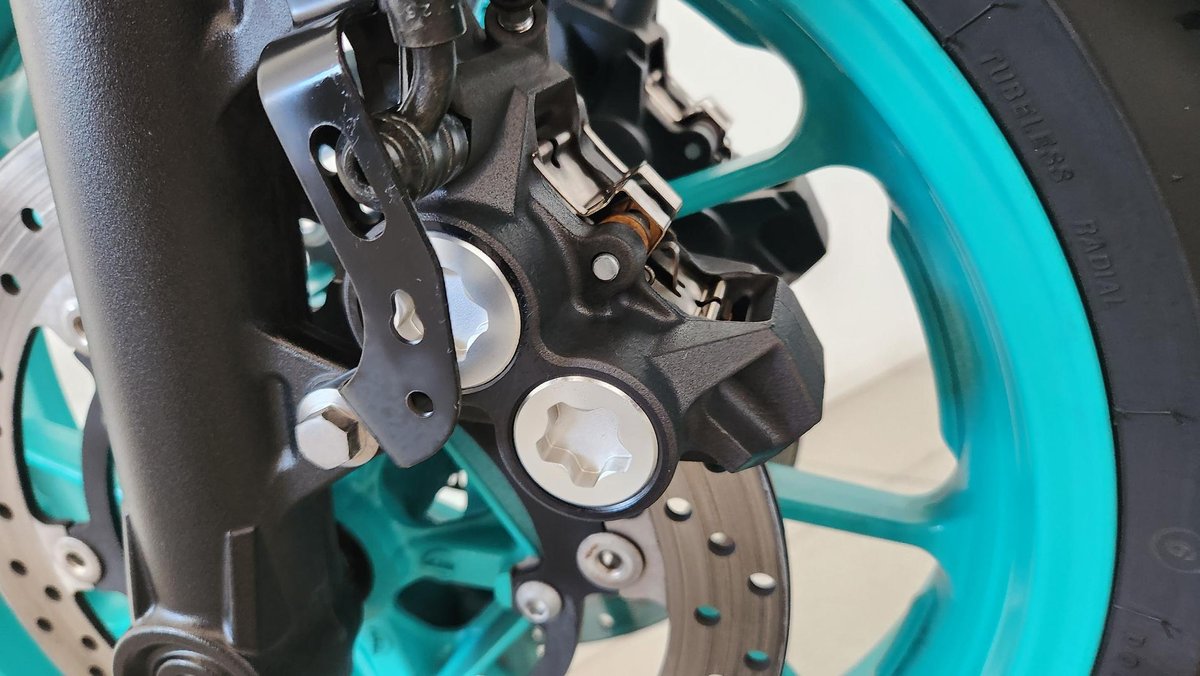 • Front Brake Description: Twin floating discs; Hydraulic; ABS