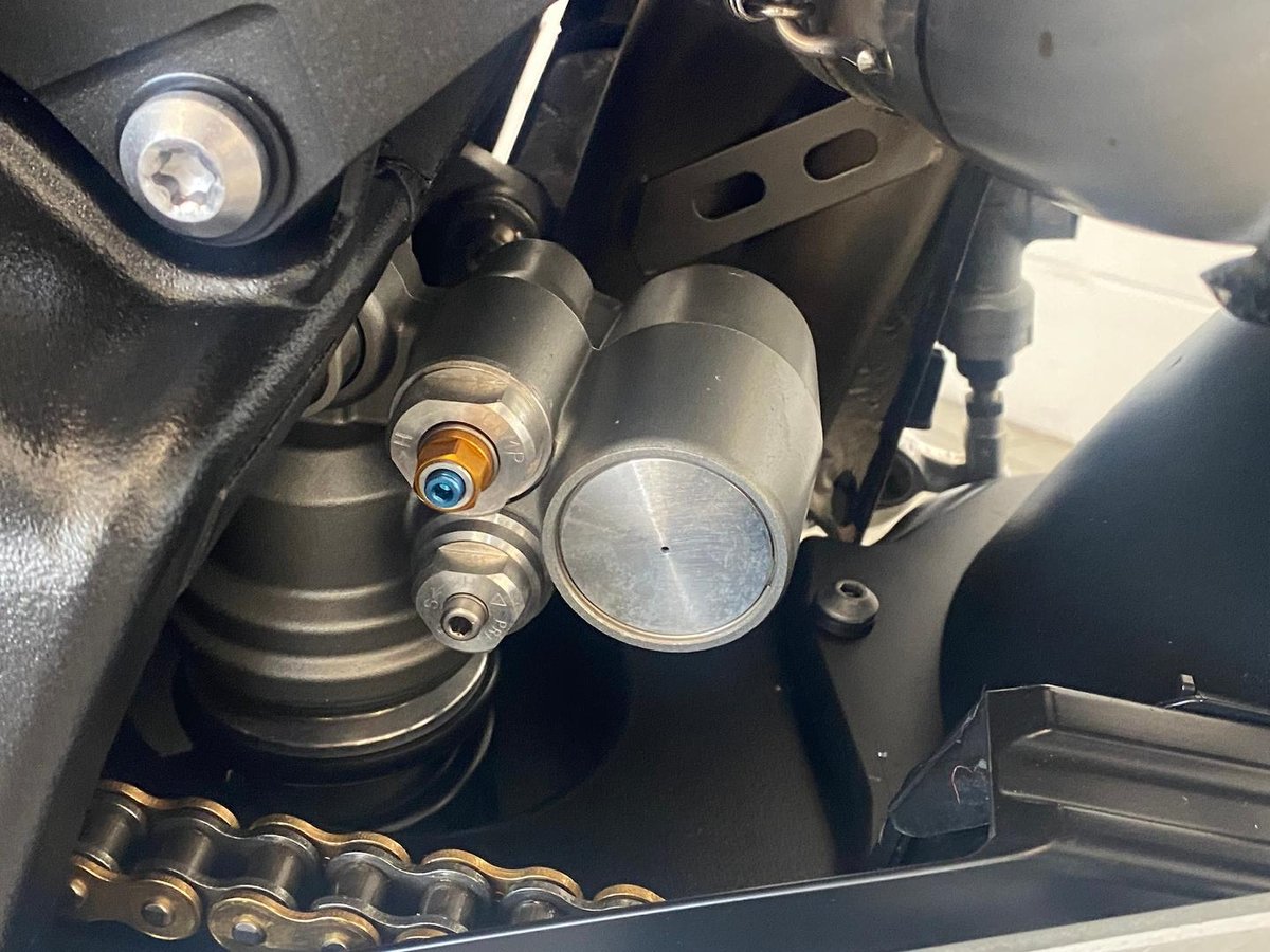 - Rear Suspension: Single shock w/piggyback reservoir; adjustable for